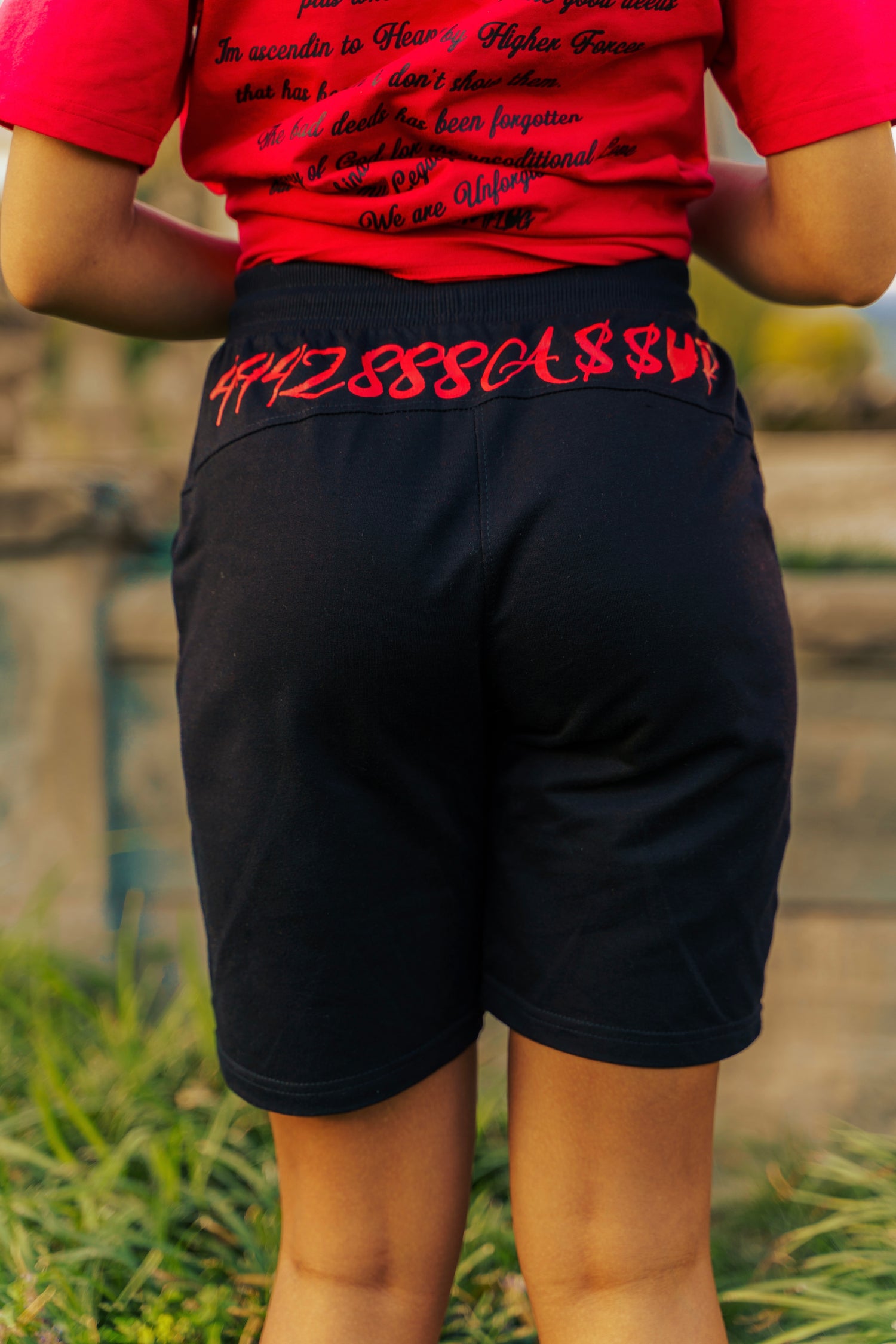 Script Shorts on the Back